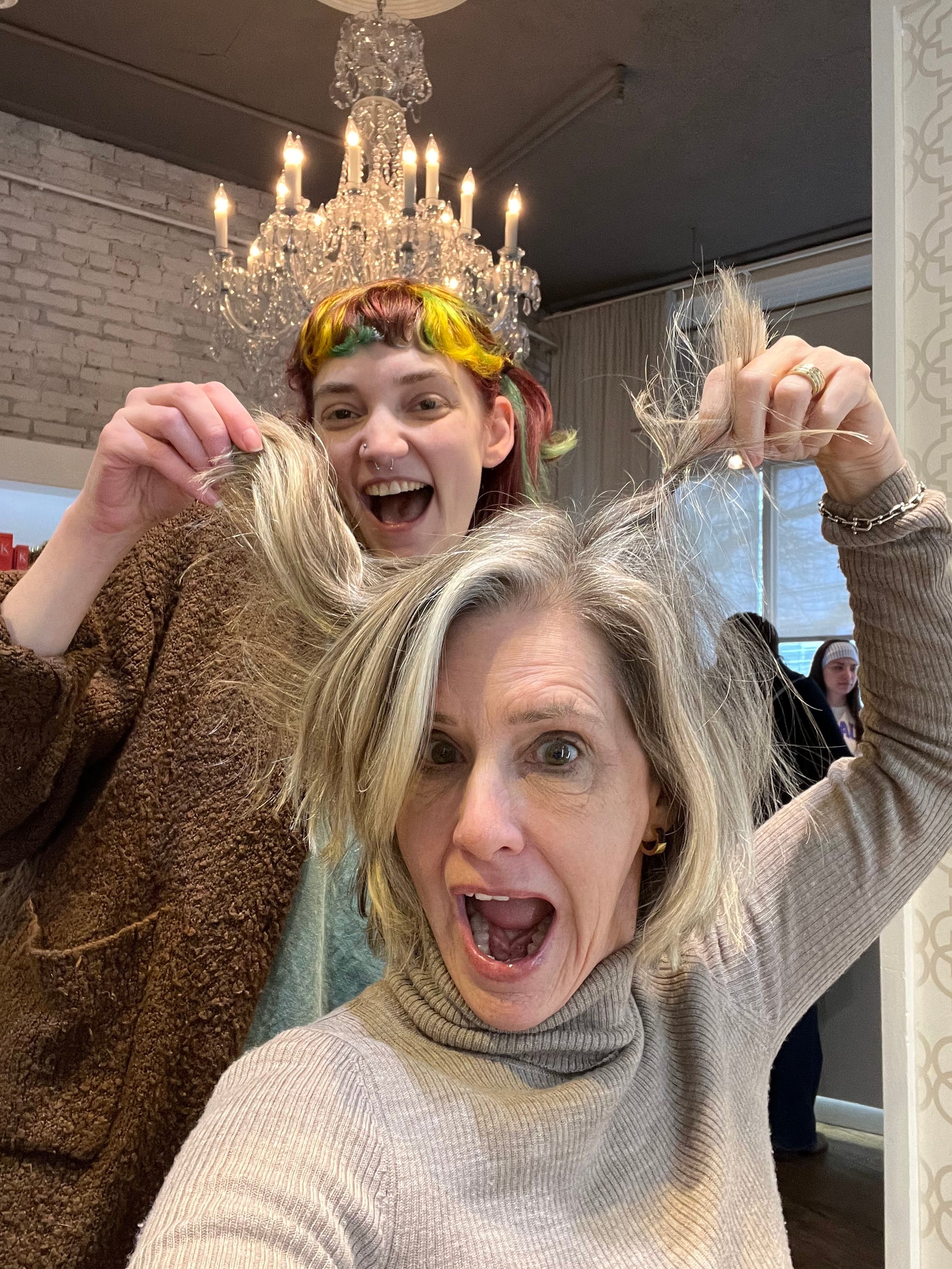 I turned to my hair stylist, Skylar, an up-with-it 20-something with hair every color of the rainbow. “Yes! Do it,” she exclaimed. “Gray hair is so cool!”
